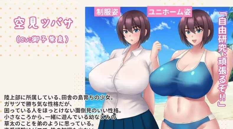 草太对幼时的玩伴,像姐姐一样存在的翼,寄予了恋慕之心。有一天,翼对草太轻率地做了一个色情的恶作剧。作为道歉,我决定帮草太做暑假的自由研究。为了自由研究在岛上巡回的过程中,翼被男人们追求,慢慢地身心俱落……