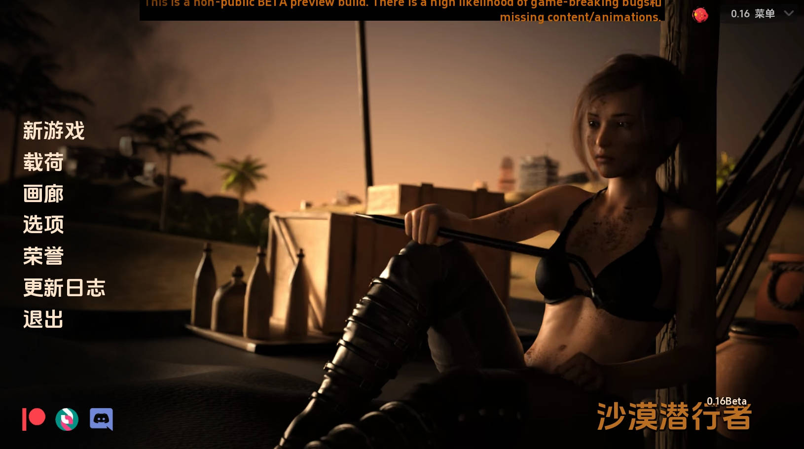 沙漠潜行者 [v0.16 Beta] 注意:进游戏界面点击设置,右脚下有个“chinese”,点击chinese自动切换中文修复打开菜单报错,已修复游戏简介这款游戏受到《辐射》和《潜行者》系列的启发,提供了原创的故事情节,涉及不同的派系和支线故事,探索浪漫、暴力以及介于两者之间的一切,其中充斥着大量成人内容。
