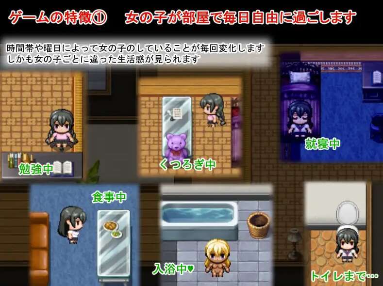 女孩们的行动会根据地点和时间带而变化,你可以按此改变她们正在做的事,并与她们聊天或提出色色问题。