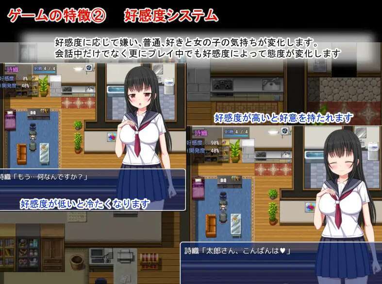 根据不同好感度设置,她们的态度会改变,对话和性爱也会改变。