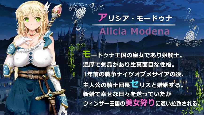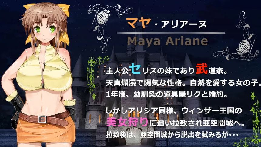 然而,作为主角塞利斯的妻子兼骑士公主的艾丽西亚,与他的妹妹、格斗家玛雅,却被温莎王国的利兹王子绑架了。