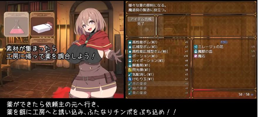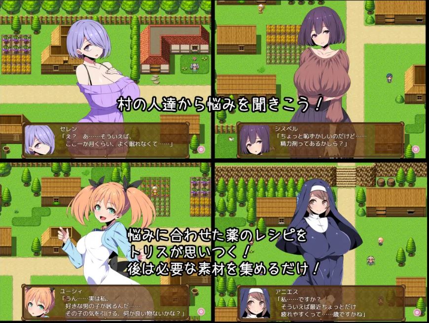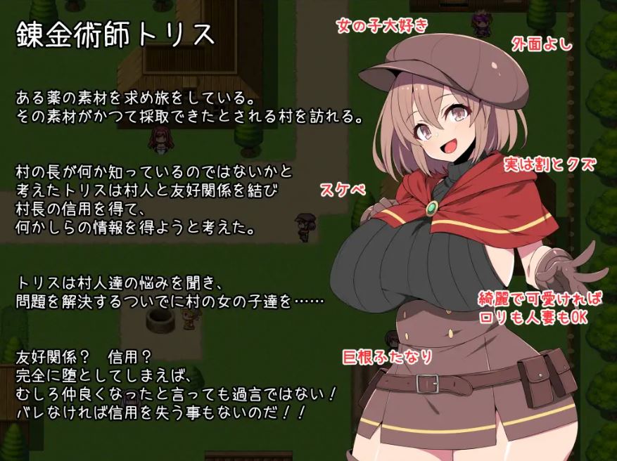这是一款由你操控特莉丝,一位一边探索森林一边倾听并解决村民的问题的扶她炼金术师的RPG游戏。